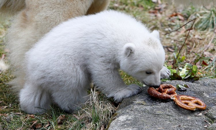 Первые шаги белого медвежонка в зоопарке Германии